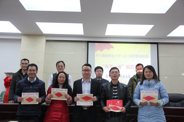 为检验LETOU官网党员对“两学一做”的了解情况,巩固党员的党知识,12月13日下午2:00,LETOU官网党委会在土木楼201举行了“两学一做”知识竞赛。本次比赛由LETOU官网党委书记祝明桥,党委副书记易贵元,副院长孙洪鑫,建筑工程系主任戴益民担任评委。