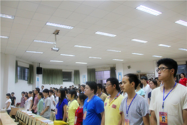 大会在国歌的奏响时开始了,全体成员肃立,行注目礼。之后曾竟兴老师上台讲话,她提到“三防四安全”,分别是防火防盗防传销,财产、人生、生命、交通安全,并用经典的事例来说明它们对我们的严重危害。接着曾竟兴老师特别指出世界杯和临近的期末考试相冲突,要求大家要以学业为重,同时说了湖南省内因熬夜看世界杯而猝死的已有5人。然后是41名新党员参加宣誓,在曾竟兴老师的带领下,每一个新党员用铿锵有力的语气宣誓。紧跟着是老党员代表赵晨青讲话,他说到我们要从群众中来,到群众中去,做好自己,一点一滴的积累。之后是新党员代表刘**讲话,他明确说了我们要完善自己,提高自己,为祖国的未来创造辉煌的历史,同时也要遵守党的章程,积极主动完善党的建设。最后是刘学宝对于党支部的结构和工作做了详细的介绍,要求党员们做好自己的工作,积极参与。并对下一年的工作进行了安排,希望都按时按质完成任务。