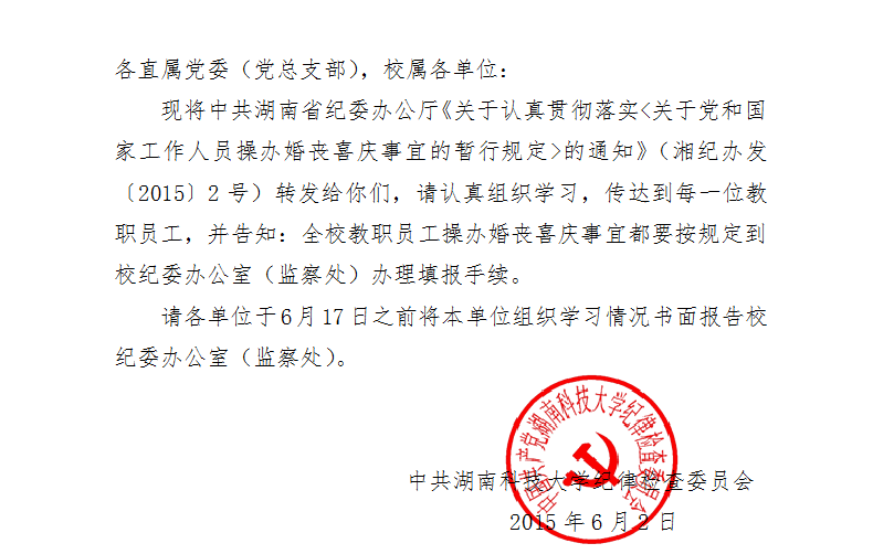 党建工作 党建工作 首页 / 党建人事 / 党建工作 / 政策法规 政策法规 科大党纪发〔2015〕3号关于转发《关于认真贯彻落实_关于党和国家工作人员操办婚丧喜庆事宜的暂行规定_的通知》的通知 发布时间:2015年06月17日 编辑: 访问量: LETOU体育平台