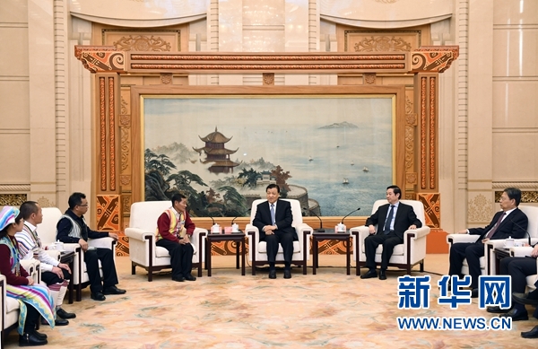 1月22日,高德荣同志先进事迹报告会在北京人民大会堂举行。报告会前,中共中央政治局常委、中央书记处书记刘云山看望报告团成员,向高德荣表示亲切慰问。新华社记者谢环驰摄