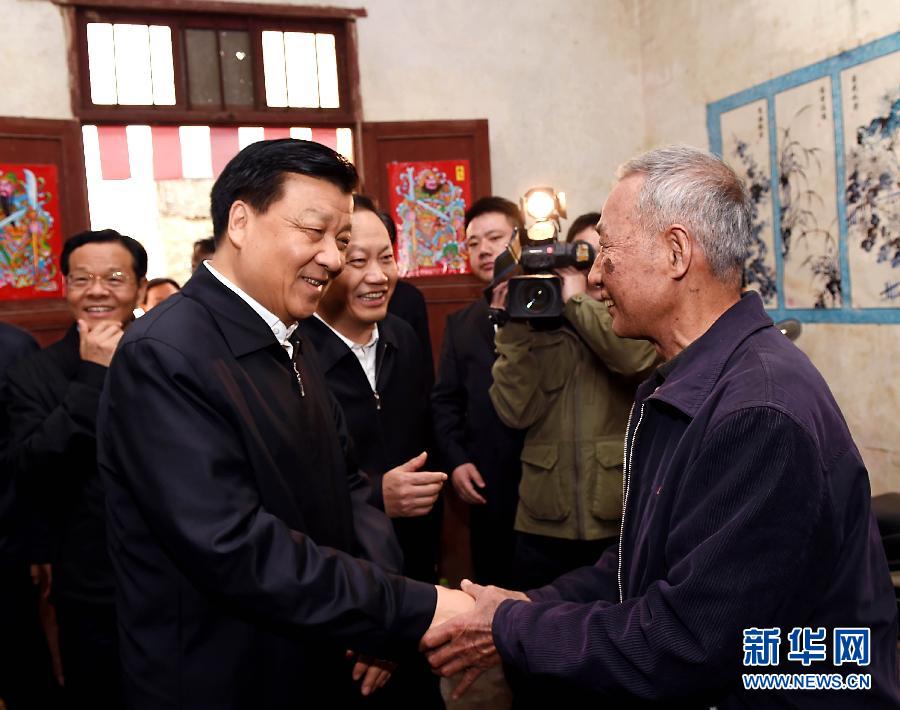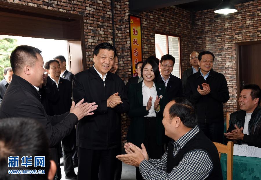 4月11日至13日,中共中央政治局常委、中央书记处书记刘云山在广西调研。这是4月11日,刘云山在梧州市万秀区凤凰村调研基层党建工作并看望村民。新华社记者 饶爱民 摄
