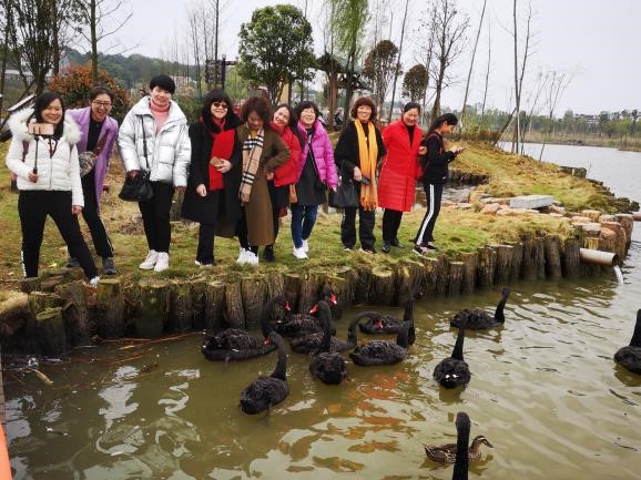 进入湿地公园,大家一路欢笑,徒步2小时,在桃花园、油菜花园、蔬菜园和天鹅湖及珍禽驯养基地、户外拓展基地等放飞美丽的心情,大家互帮互助,全身心的参与,舒活筋骨。
