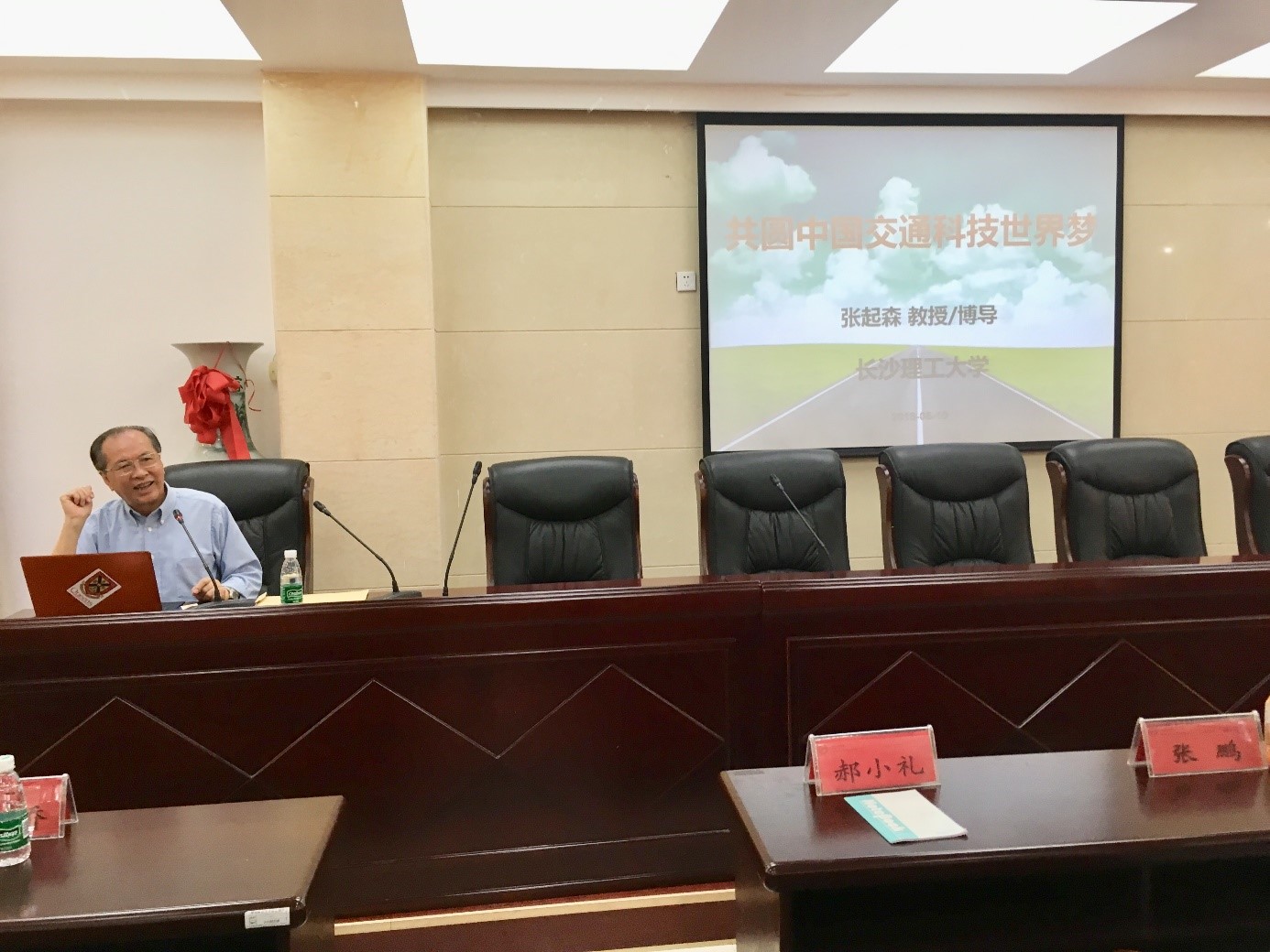 2018年6月10日上午10点,长沙理工大学张起森教授、博士生导师应邀来LETOU官网,在土木楼201为全院师生、特别是道路与桥梁工程系师生作”共圆中国交通科技世界梦“的专题报告。LETOU官网祝明桥院长、道路与桥梁工程系教师以及土木工程专业学生出席了报告会,报告由祝明桥院长主持。