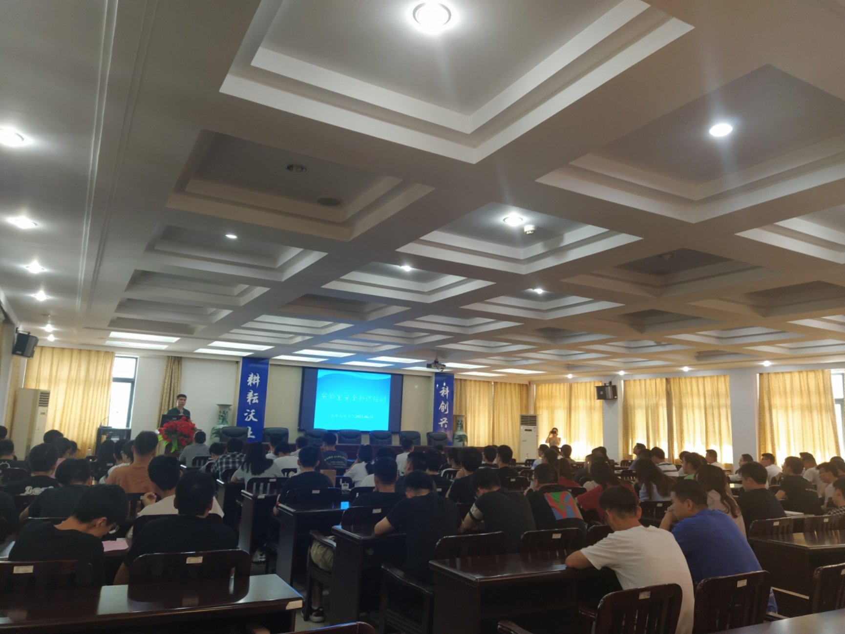 首先,由汪建群副院长对安全工作做指导讲话,他提出了要完善落实管理制度,落实安全责任体系,做好日常管理和突出重点管理等要求。其次,危化品实验室管理员李学美老师进行了危化品安全知识培训。最后,结构室管理员欧阳国锋老师在结构试验大厅进行了室内设备操作演示和相关安全事项讲解。