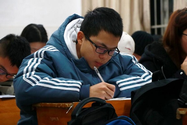 考试开始之前,同学们早已到达教室开始准备。各个班级助班、蹲点也都对考试的注意事项作了讲解,并说明此次考试作为对期末考试的一次模拟。在同学们把随身物品交至前排后,考试正式开始。窗外寒风呼啸,教室内只听得见笔尖划过纸张的声音,同学们对窗外的声音置若罔闻,一心沉溺于自己答题的节奏中。他们或奋笔疾书,或眉头紧锁,目光似乎想要洞穿这张试卷。在他们考试期间,20级辅导员前往每一个考试教室去查看他们的考试情况,肖老师与助班交谈了解情况,在教室里巡视。随着时间的流逝,同学们已经开始进行最后的检验,之后陆陆续续交上试卷离开考场。