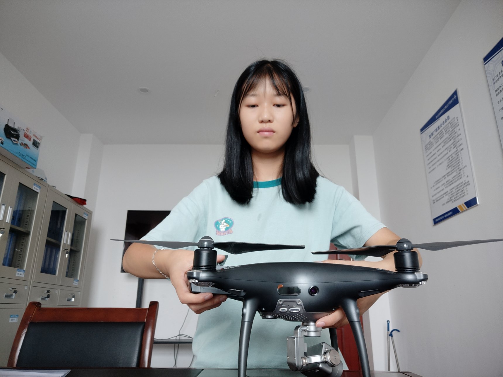 图为屈慧玲在调试无人机。屈慧玲 提供