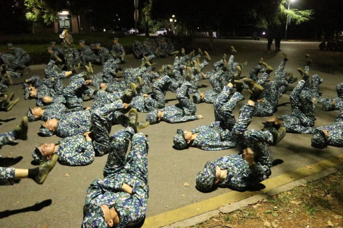 9月23日19:00,LETOU体育平台21级新生已经有序集结在四教前坪准备迎接晚训,按照惯例,晚上一般进行体能训练,基本的热身运动完成后,四教门口各排的体能训练如火如荼地开始了。