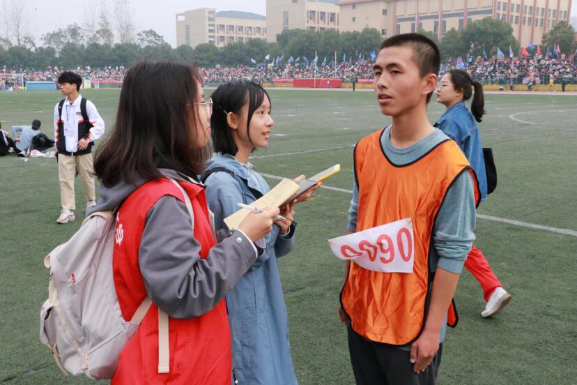 运动员们在绿茵场上做着赛前热身运动。秋风送爽,似乎在给运动员们助力呐喊。运动员们带着必胜的决心走上了橘红色的跑道。起点是他们蓄势待发的身影,终点是他们万众瞩目的荣光。