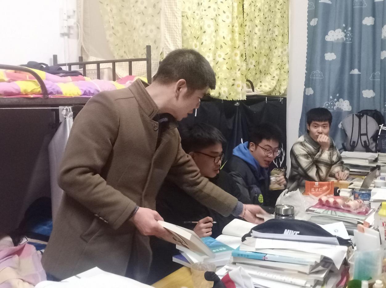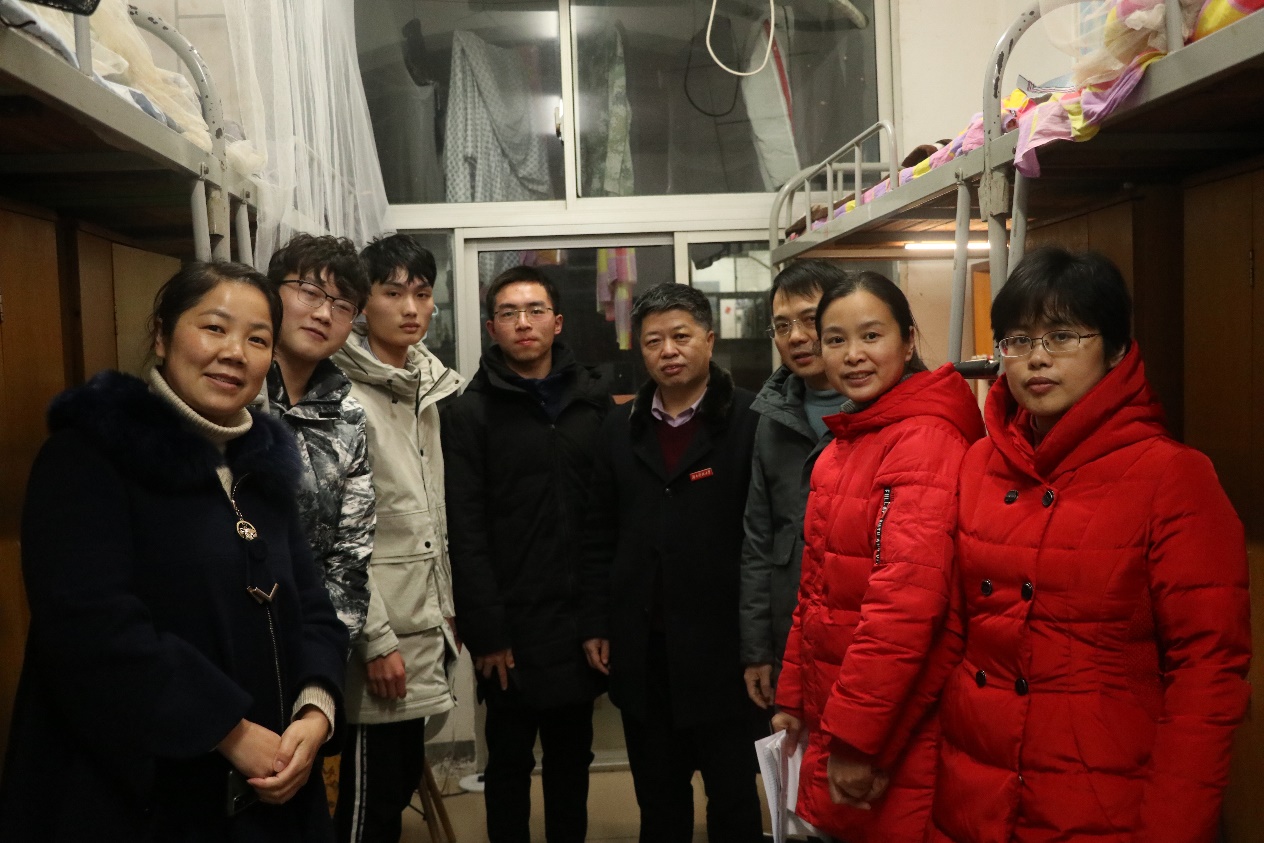 院党委书记祝明桥、院党委副书记王艳和辅导员、班主任们来到学生宿舍八区进行下寝慰问。慰问过程中,老师们首先确认了各寝室同学的到校情况,随后对寝室内的卫生情况以及消防安全隐患进行调查。在日常生活方面,老师们关心了同学们的假期生活,并叮嘱要尽快回到在校的学习生活状态,老师们还询问了同学们对考研的兴趣,并对有考研意向的同学作出指导,表示要尽早开始准备工作。
