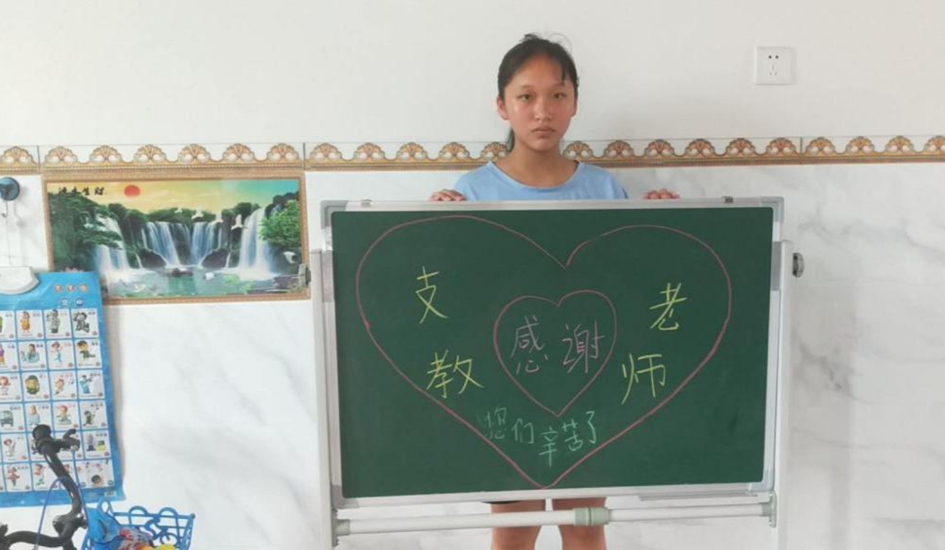 学生赵碧岑了解到贫困儿童的情况后,第一时间联系了团队负责人。成绩优异的她用自己的奖学金为孩子挑选了一个新书包,“美好的生命应该充满期待、惊喜和感激”,她这样说道。一个背包体现了志愿者们对孩子们茁壮成长的美好祝福,一块黑板承载了孩子们支教时光的美好的回忆与对未来的期待。尹思列在收到的心爱的黑板上写上了:“支教老师辛苦了、感谢”等字样,红爱心表示对支教老师们的感激和怀念之情。尹乾、刘丰泰收到自己心心念念的书包后兴奋不已,感谢信中表示不会辜负这份礼物,以后会努力学习,徜徉在知识的海洋里,不忘感恩。