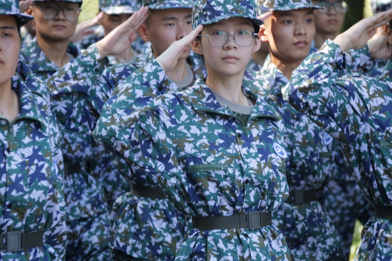 下午三点,训练如期开始。新生们首先进行了蹲姿、齐步走、正步走等已学过的内容的复习训练,之后,教官们向新生展示擒敌拳,并交给他们动作要领。弓步、握拳、转身,每个动作都在教官的纠正下愈发熟练。汗水倾洒,阳光下,他们意气风发、风姿绰约。