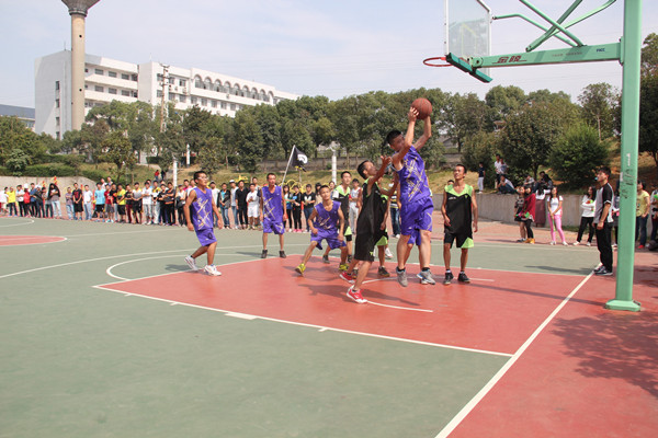 中午12时30分,篮球赛准时开始,随着裁判的一声哨响,开始发球。建工队队员一跃而起扣下篮球,率先拿下主动权,场上的热情瞬间被点燃。烈日当头,热浪来袭,球场上,运动员们挥洒汗水,裁判们恪守职责。建工队的后卫,身形一转,球迅速绕过对手,然后轻轻一投,球以一个完美的弧度栽进篮筐。对手也不甘示弱,工管队中锋纵身一跳,抢到篮板,迅速发起助攻,完成一次漂亮的反转。场外的拉拉队们也手拿道具为场上的运动员们加油助威,尽管艳阳高照,她们依旧热情高涨。“建工二,加油”,“工管二,防一个”……此起彼伏的加油声,经久不息的掌声。