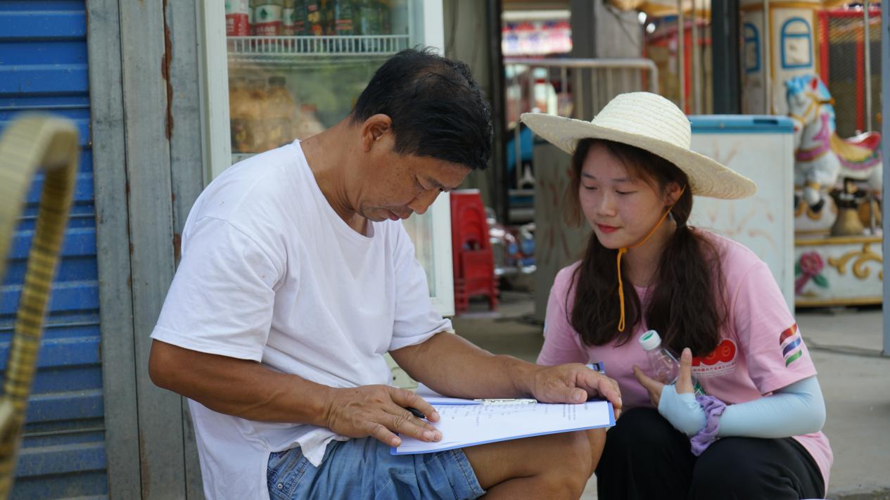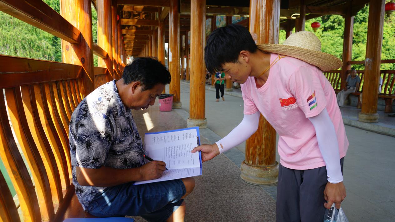 午休过后,调研组成员以饱满的精神,踏上了前往调研的道路。炎阳炙人,汗水浸湿了志愿者们的后背,但这并不能降低他们的热情。今天的调查覆盖了大合村周边的两个村庄,共收集问卷60余份。