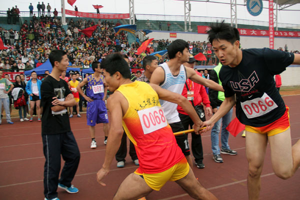 10月18日上午11点,LETOU官网2013年秋季运动会田径男子组4x100米、女子组4x100米接力赛在北校新田径场进行。其中LETOU官网女子代表队获得第六名,男子代表队获得第八名的好成绩。