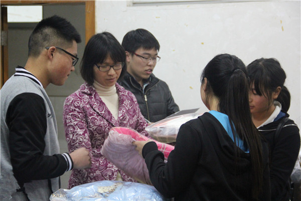 11月27日感恩节晚9:00,LETOU体育平台贫困新生寒衣发放仪式在五教106举行。学院为所有未获得助学金的贫困生精心筹备了棉衣。院14级辅导员赵晓玲参加发放仪式。