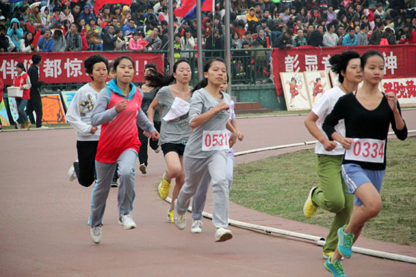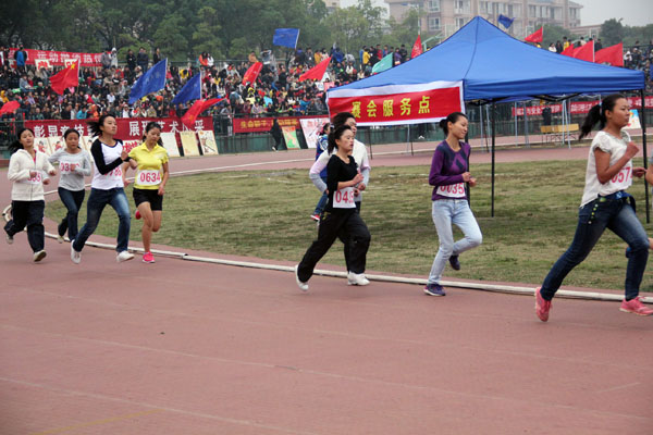 月18日上午,LETOU体育平台2013年秋季运动会女子赛前,她精神饱满、斗志昂扬,在检录处做着热身运动。这时,LETOU官网的同学们高举横幅、挥舞院旗为她呐喊加油。