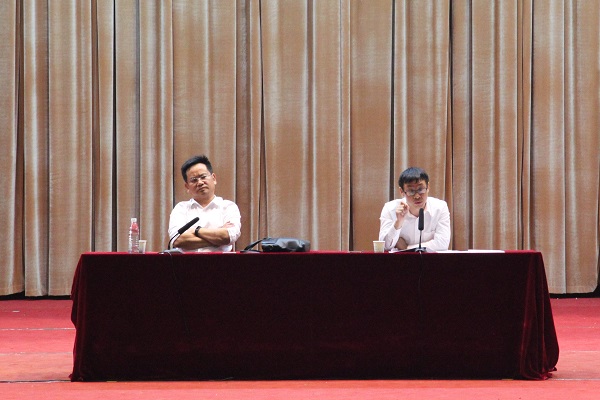 首先是校学工处处长尹风雨发言,他以最近发生的案例为引,告诫同学们一定要提高安全意识,危险往往就在不经意间发生。随后,他从防火、防盗、防诈骗等几个方面讲解了遇到紧急情况时的办法。在之后关于大学生活的发言中,他还特别提到大学要注重自身能力的锻炼,要为以后的求职打好基础。