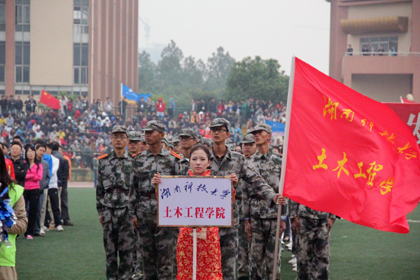 伴着激昂的进行曲,在欢声锣鼓中,各学院代表队依次进场,土木学院整齐的方块队踏着矫健的步伐,喊着嘹亮的口号经过主席台,得到了校领导的一致认可。其他学院的方块队也各自身着统一的服装,精神饱满地接受了主席台领导的检阅。各个学院独具一格的队形变换和极具特色的精彩表演为全校师生带来了一场异彩纷呈的视觉盛宴。