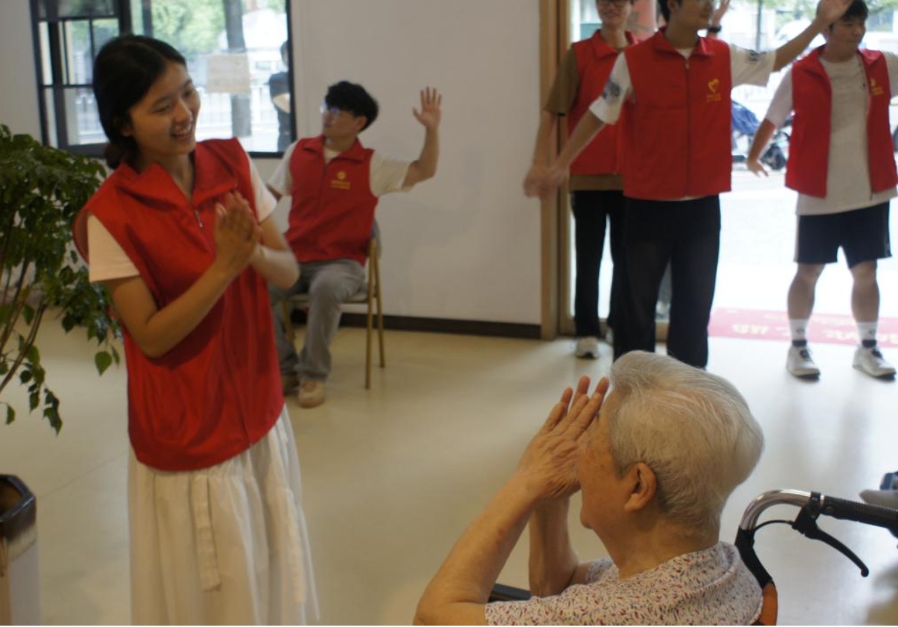 活动现场,志愿者们表演了红歌、魔术等文艺节目,还设置了“石头剪刀布”“套圈”等趣味游戏环节,给老人们带去了欢乐和温暖。互动间隙,志愿者们围坐在老人身边,开启一场跨越代际的温情对话。他们分享自己的校园生活,倾听老人讲述过去的故事,感受着奋斗年代的艰辛与坚持。志愿者们在倾听中深受触动,“每一个故事都是一堂生动的人生课,让我更明白奉献的意义,也更加坚定了践行雷锋精神、投身志愿服务的决心。”