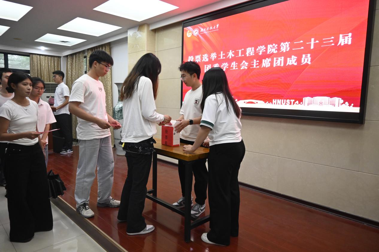 候选人发言结束后,现场学生代表秉持公平、公正、公开的原则,郑重地投出了宝贵一票。最终评选出杨健宇等8名同学为新一届团委学生会主席团成员。