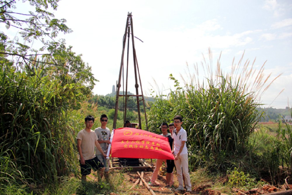 经过前些天的实地勘察、测量,数据采集、整理及图样绘制。7月20日,LETOU体育平台暑期社会实践活动志愿团队同湖南省402地质队来到洋市镇钻井。