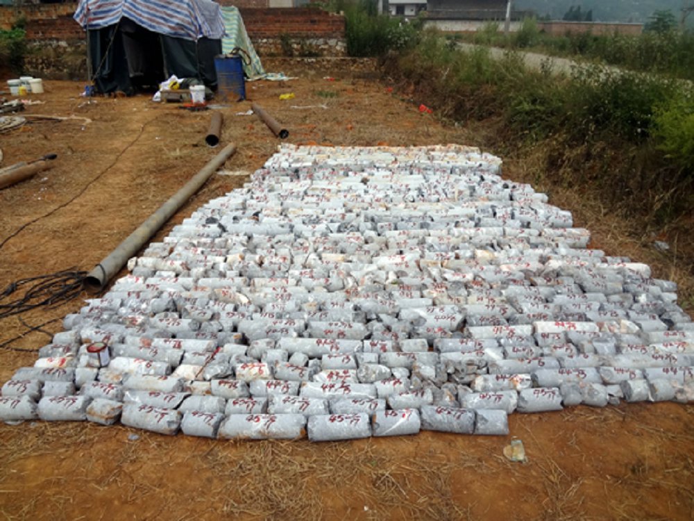 早上7点半,志愿团队到达火里塘村,休息片刻后,同402地质队将钻井的器械共同转移到第一天的测试点。钻井分为三个步鄹:一是破碎岩石,二是取出岩屑,保护井壁,三是固井和完井。钻前工程中井口准备工作有:第一是平井场打水泥基础,第二是钻井设备的搬迁和安装,第三是井口的准备工作——下导管和钻鼠洞,第四是备足钻井所需的各种器材,如钻杆、钻铤、钻头及钻井泵必需的配件等。前面这些工作都完成后便开始下钻,下钻的主要操作步骤包括挂吊卡,以高速档提升空吊卡至一立根高度;二层台处扣吊卡,将立根稍提移至井口中央,对扣;拉猫头旋绳上扣;用猫头和大钳紧扣;稍提钻柱,移出吊卡;用机械刹车和水刹车控制下放速度,将钻柱下放一立根距离;借助吊卡将钻柱轻座在转盘上,从吊卡上脱开吊环。再去挂吊卡,重复上述操作,直至下完全部立根,接上方钻杆准备钻井。