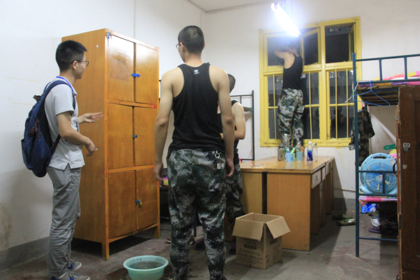 晚上9:30,在新生结束了严格训练的第一天后,LETOU官网各部门副部在团委学生会的统一分配下,到大一新生宿舍监督新生内务整理工作。此次对大一新生内务整理的指导工作主要包括:卫生间的污垢清理,宿舍物品的整理以及生活用品的规范摆放,玻璃的清洗等等。各位监督人员认真贯彻这些标准,不放过一个细节,从各方各面上对新生的内务整理进行监督。新生们也力求把宿舍卫生搞好,做到尽善尽美。他们不喊苦,不喊累,尽管汗水浸湿衣衫也一丝不苟地整理内务,不落下任何一个角落。新生吃苦耐劳的精神与积极上进的生活态度,在他们身上表现得淋漓尽致。