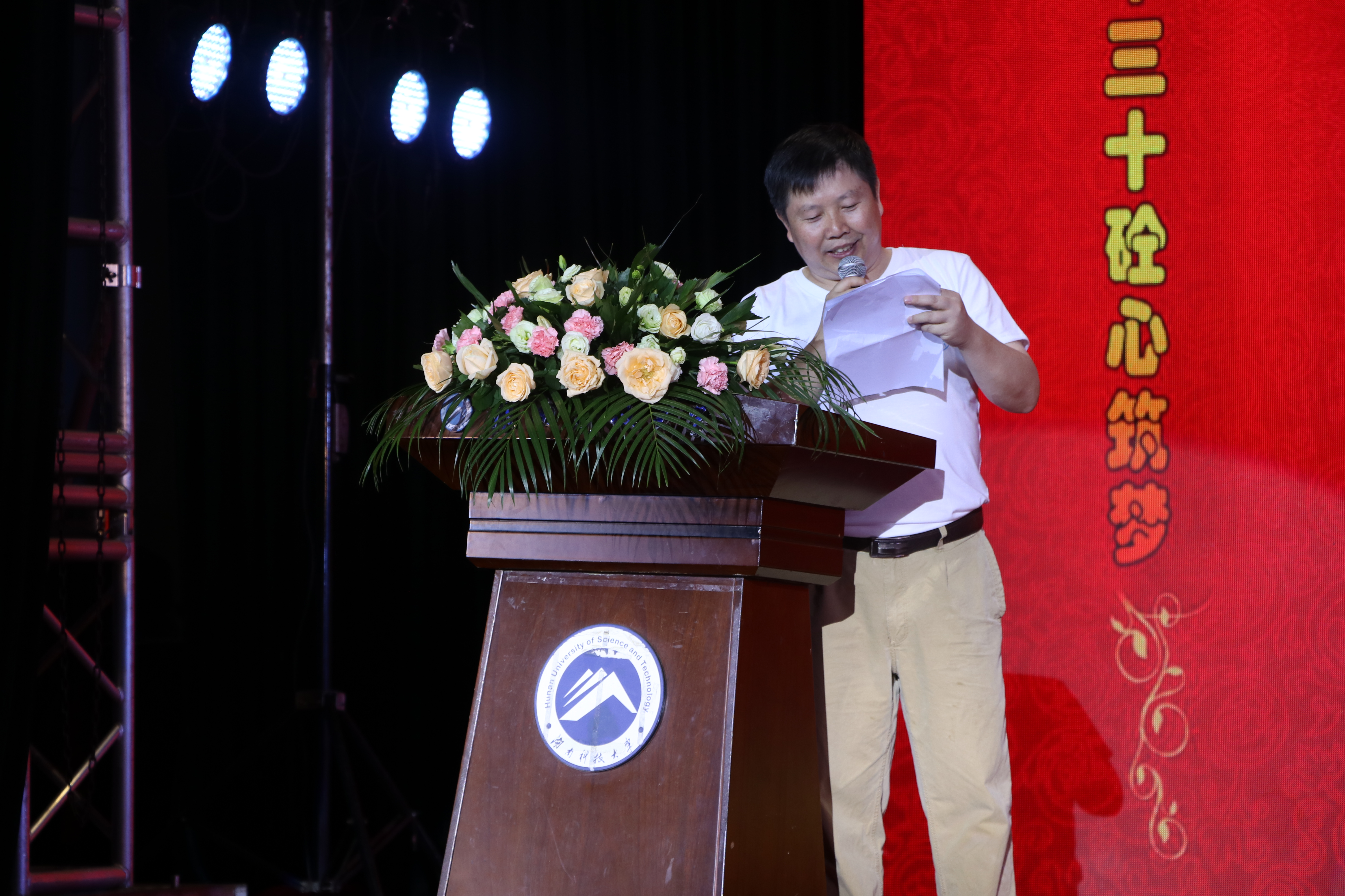 而除了各种精彩节目,土木学院还邀请了两位在土木学院奉献多年的优秀教师为在场的师生传授经验、传递精神。钟新谷教授说:“我从1988年来到科大任职,到今年刚好30年。虽然我临近60,但依旧希望能为学院付出自己的一份力。30年来,我秉持着温柔与严厉并济的教学理念,重视培养学生的交流以及创新能力,看着学生们一届届走出入社会,我很欣慰。衷心祝福学院贤才辈出、辉煌鼎盛!”皇晓东老师亦陪伴着土木学院走过了30年的风风雨雨:“刚开始的土木学院只有两个专业两个班60多人,发展到现在,我们不仅学生多了,还拥有了硕士点,通过了工程教育专业认证。希望我们学院能够越办越好,越来越辉煌。”