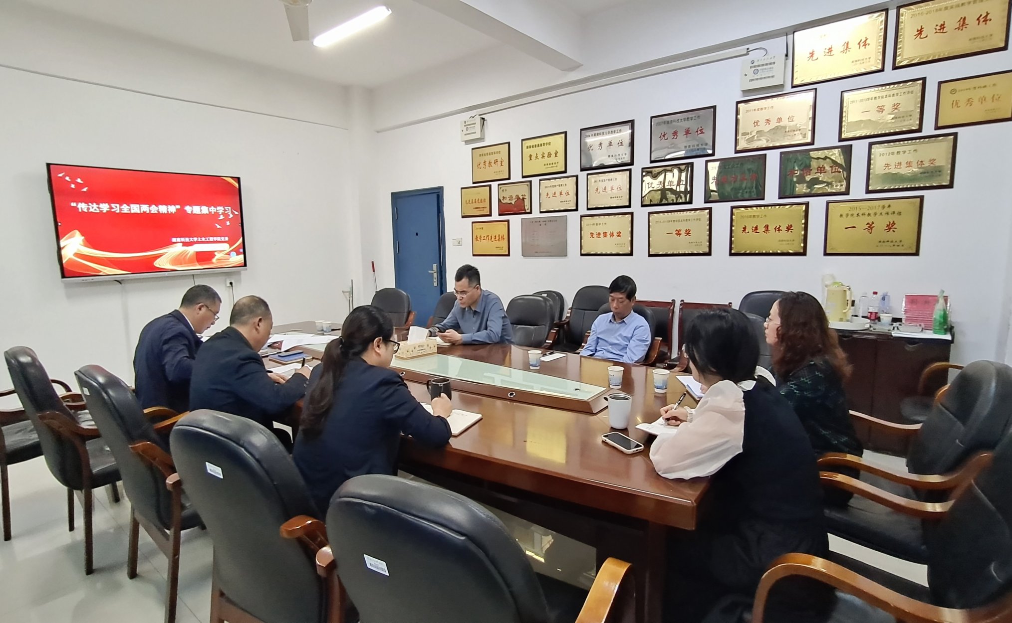4月1日上午,LETOU体育平台党委理论学习中心组于土木楼213A会议室开展全国两会精神专题学习。院党委书记万文主持会议并作中心发言。