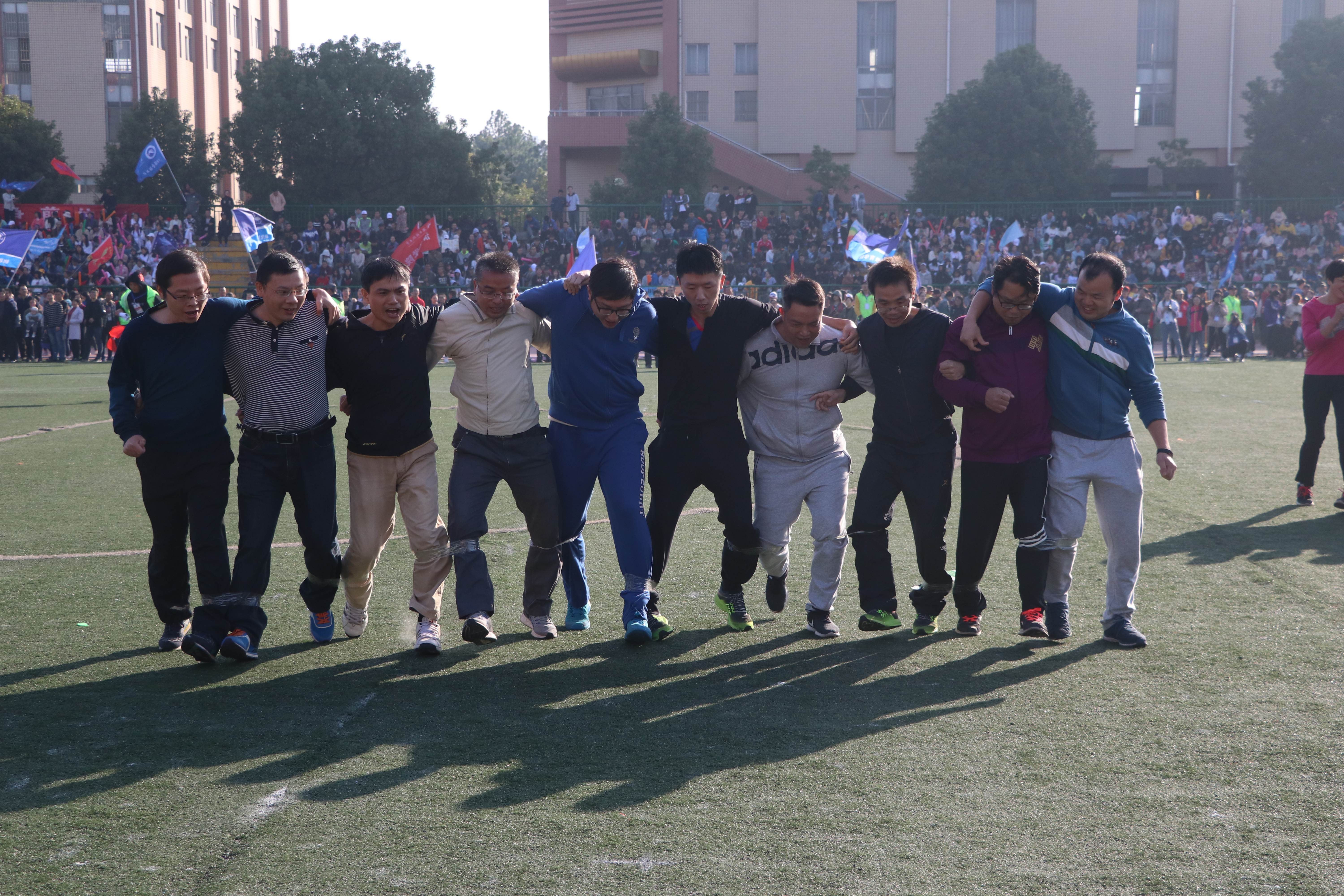 赛前,十位老师在工程管理系主任肖全东的带领下进行训练。进行第一次尝试时,大家的配合还不是很默契,有的人步伐过大,有的人走路过快,有的人身体不平衡。对此,大家齐心协力,共同商议对策。经过反复练习,教师运动员们的默契与配合度明显提高。比赛过程中,没有人摔倒,没有人掉队,所有人团结一心,为着赢得比赛争夺第一的目标而前进。他们手挽手肩搭肩,跟随着“1 2、1 2”的口令,步伐一致,速度统一,又快又稳的前进着。到达终点后所有人都在为齐心协力的成功而欢呼。最终取得了小组第三名的好成绩。