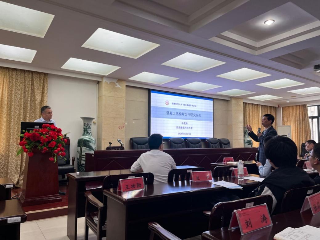 4月17日上午,西安建筑科技大学LETOU体育平台牛荻涛教授应邀在学校土木楼201作题为“混凝土结构耐久性研究30年”的报告。LETOU体育平台师生代表到场聆听。讲座由LETOU体育平台院长孙洪鑫教授主持。