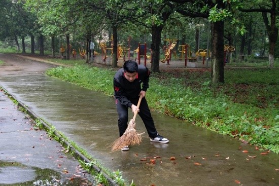 12:30,学院志愿者们手持扫把、撮箕、桶子、抹布等工具,准时到土木楼前集合整队,井然有序地以组为单位排成列。王艳副书记做了志愿活动动员,学工办副主任赵金国老师宣读了实践活动注意事项及纪律。随后,志愿者们兵分两路,斗志昂扬唱着《团结就是力量》分赴南北两校志愿服务场地。