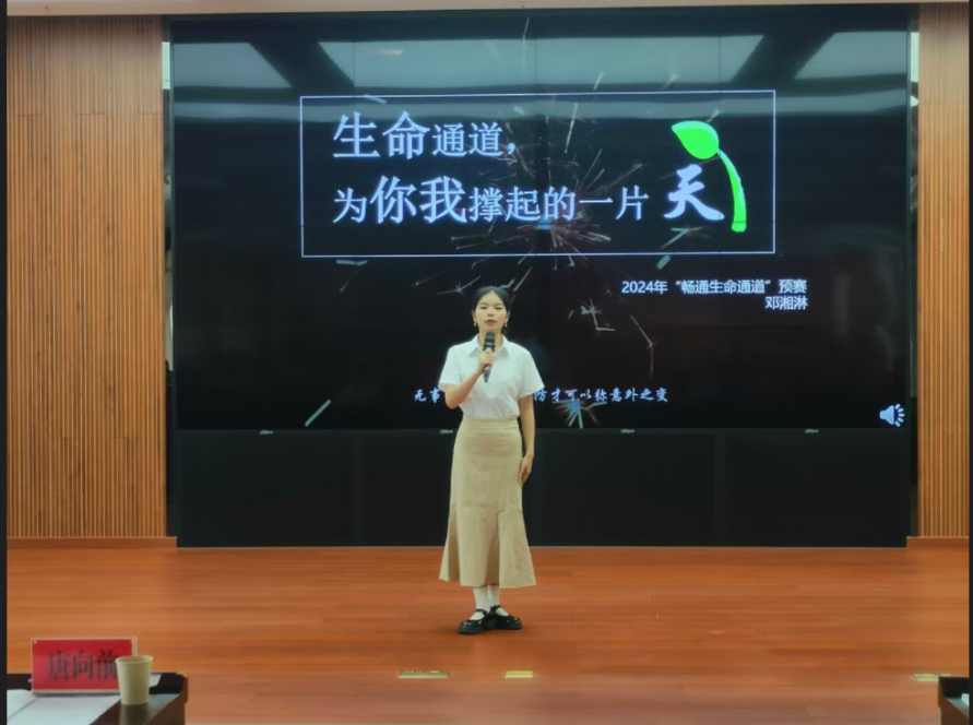 邓湘淋的演讲慷慨激昂,声情并茂,“如果没有生命通道,就算再怎么努力也无处逃生。我相信,如果可以选择,没有人会愿意在生命的最后体验这般绝望。”邓湘淋以身边安全事故为例,警醒大家重视安全生产。