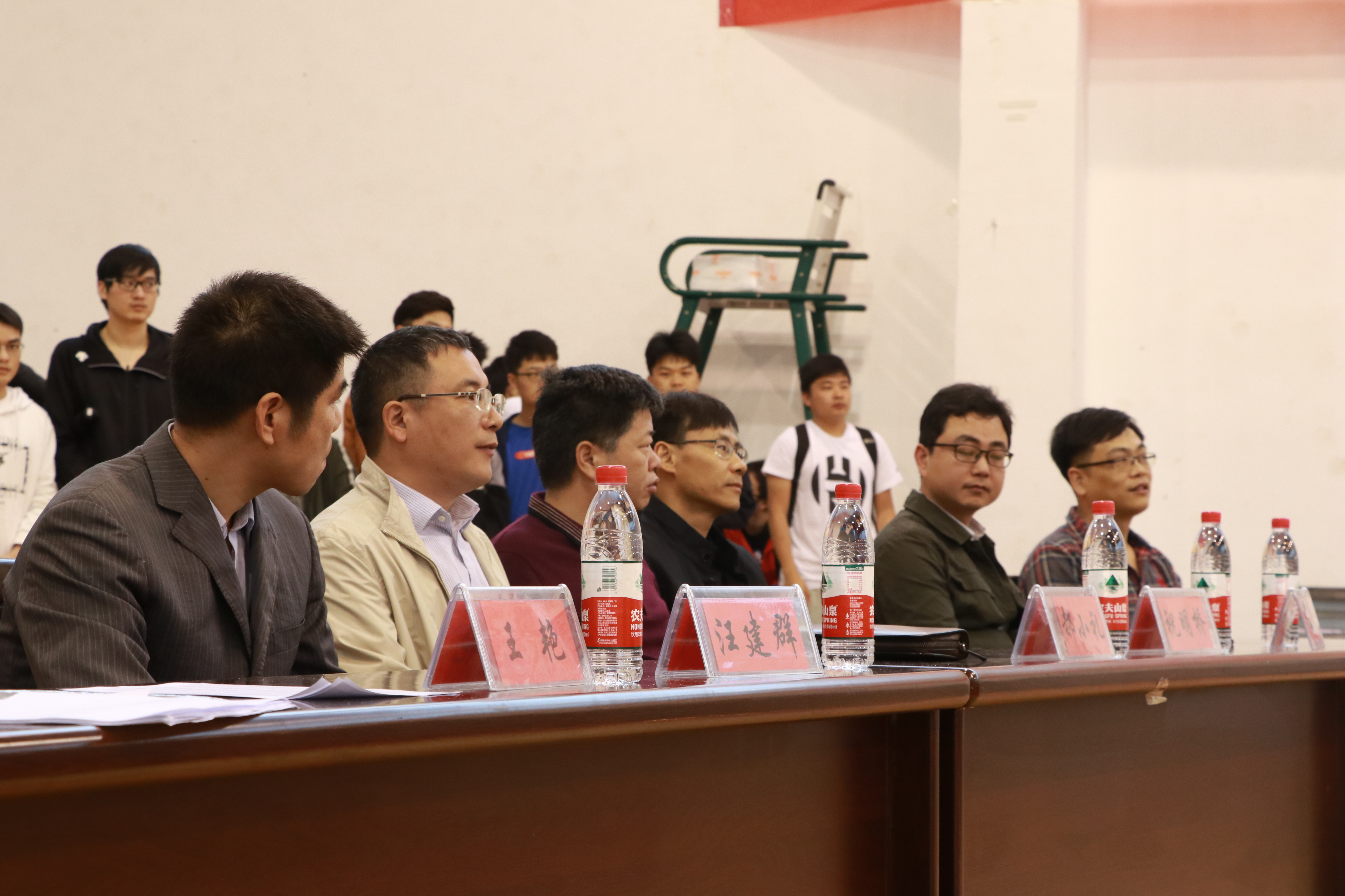 比赛前,嘉宾评委老师们在致辞中指出结构设计竞赛增强了大学生的创新意识,也培养了其动手能力,无论最终结果如何,比赛结果并不是最重要的,重要的是可以学到书本上学不到的经验,并预祝参赛选手赛出理想成绩。紧接着,比赛正式开始,科技协会成员有条不紊地进行检测、称重、加载、登记成绩等过程,不容丝毫懈怠。加载环节时,各组选手都小心翼翼地将模型结构底座固定在加载台上,待稳定后进行砝码加载。选手们都全神贯注于手中的拉索,现场气氛激烈而紧张。对于加载成功的模型,黄海林老师认为主要有四点,分别是模型构造选型巧妙、制作工作精良、团队协作合理和加载现场的运气。郝副院长表示加载失败大多由于不注重细节和专业知识不够。竞赛中加载成功的作品还会经过最后评定,角逐出最终的胜利者。