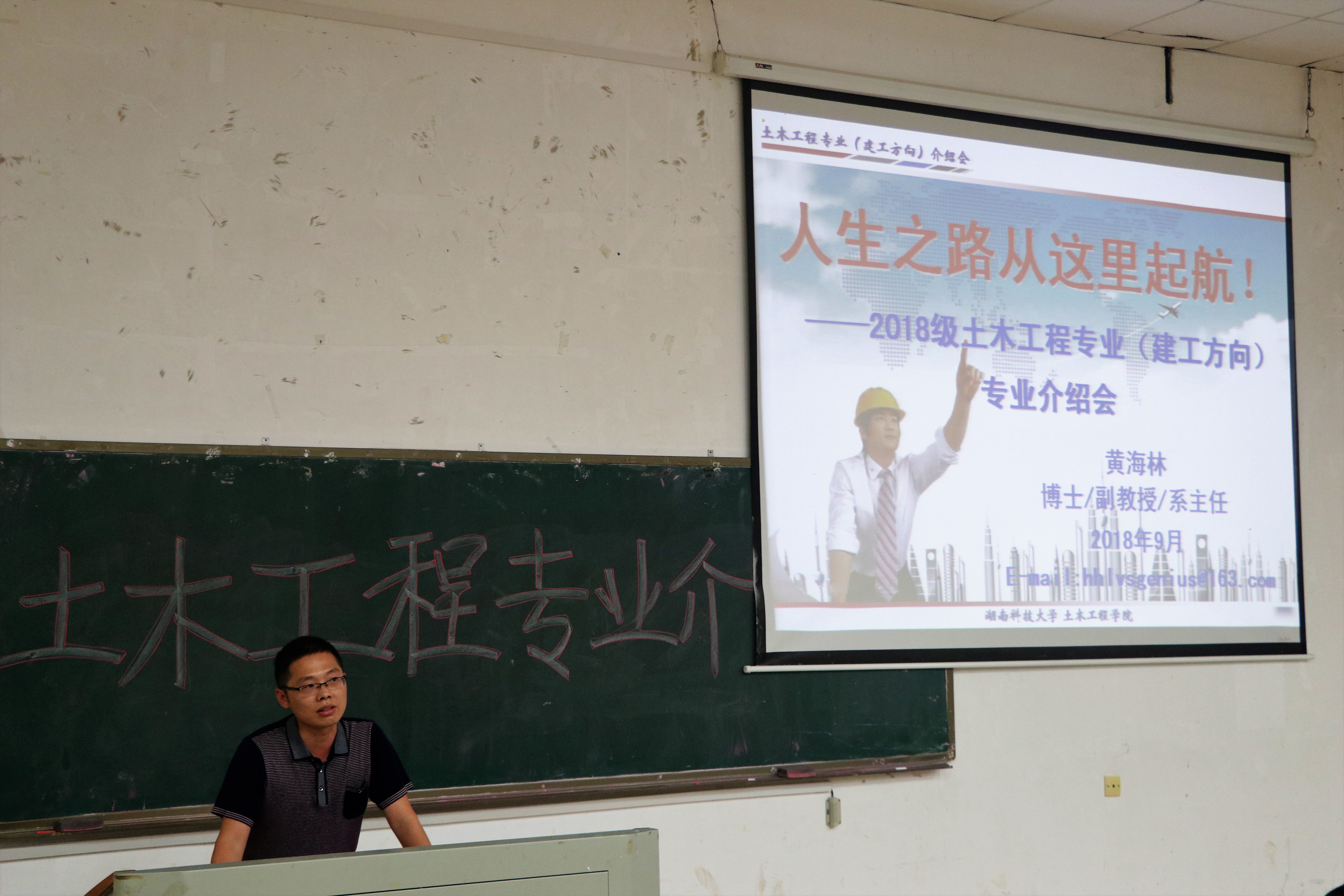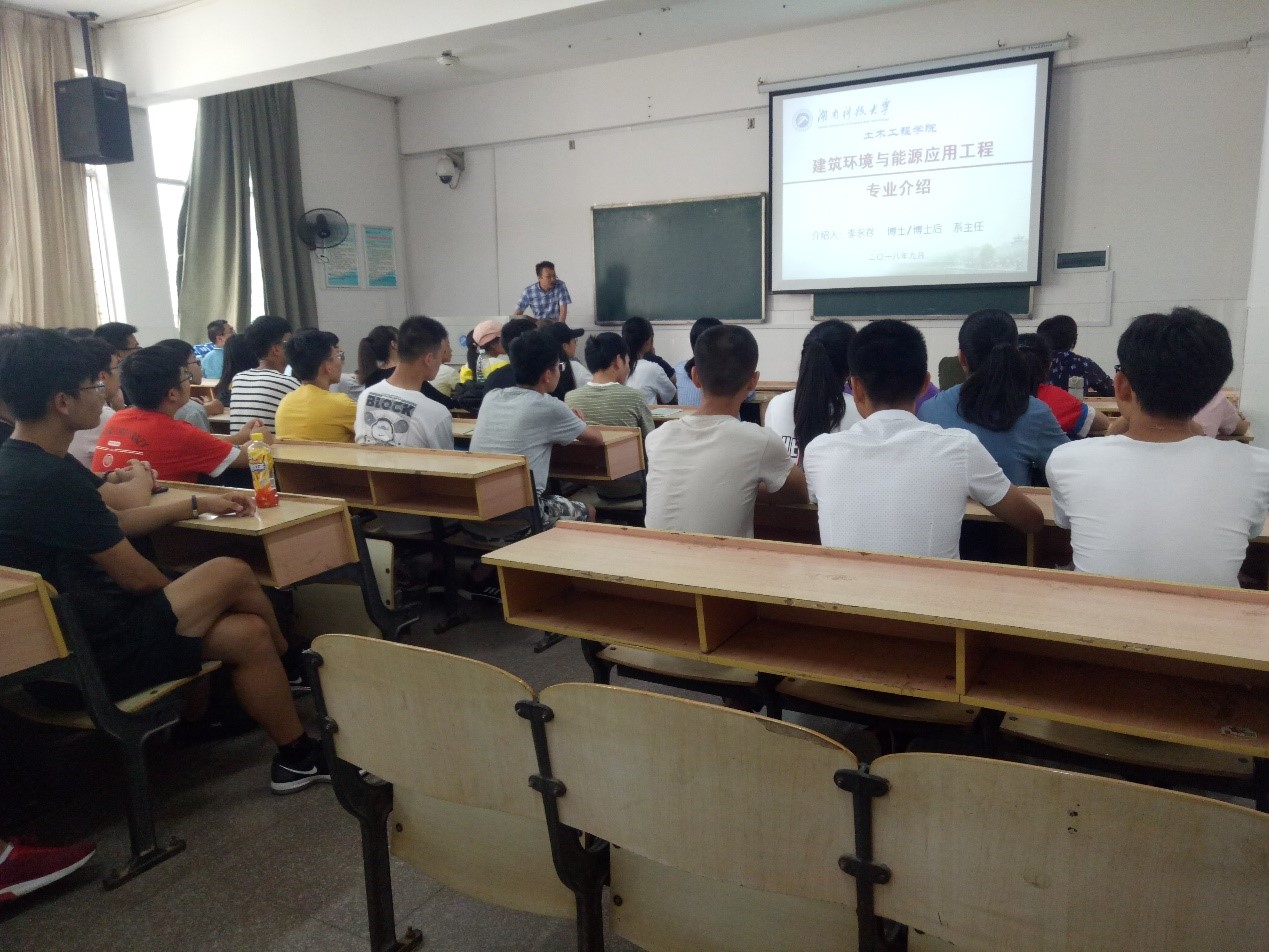 各专业介绍大会按时进行,工程管理系肖全东老师通过PPT告诉学生们该专业的培养目标、专业平台以及实践经验;彭剑主任以介绍力学领域的世界名人开头,向工程力学的新生们打开了一个关于力学的全新世界,并以该专业中的优秀老师和杰出毕业生为例,鼓励同学们积极进取,努力学习;给排水科学与工程系邓仁健老师将基础课和专业课一一列出,并以他的教学经验向同学们介绍了一些实用的学习方法;建筑环境与能源安全专业系主任介绍了专业的基本情况、发展历程、取得的丰硕教研成果等;土木专业各方向的老师代表主要介绍了该专业的来源、社会地位以及就业方向,简单讲解了专业课程安排,并介绍了专业情况,勉励大家刻苦学习,做好学业规划。