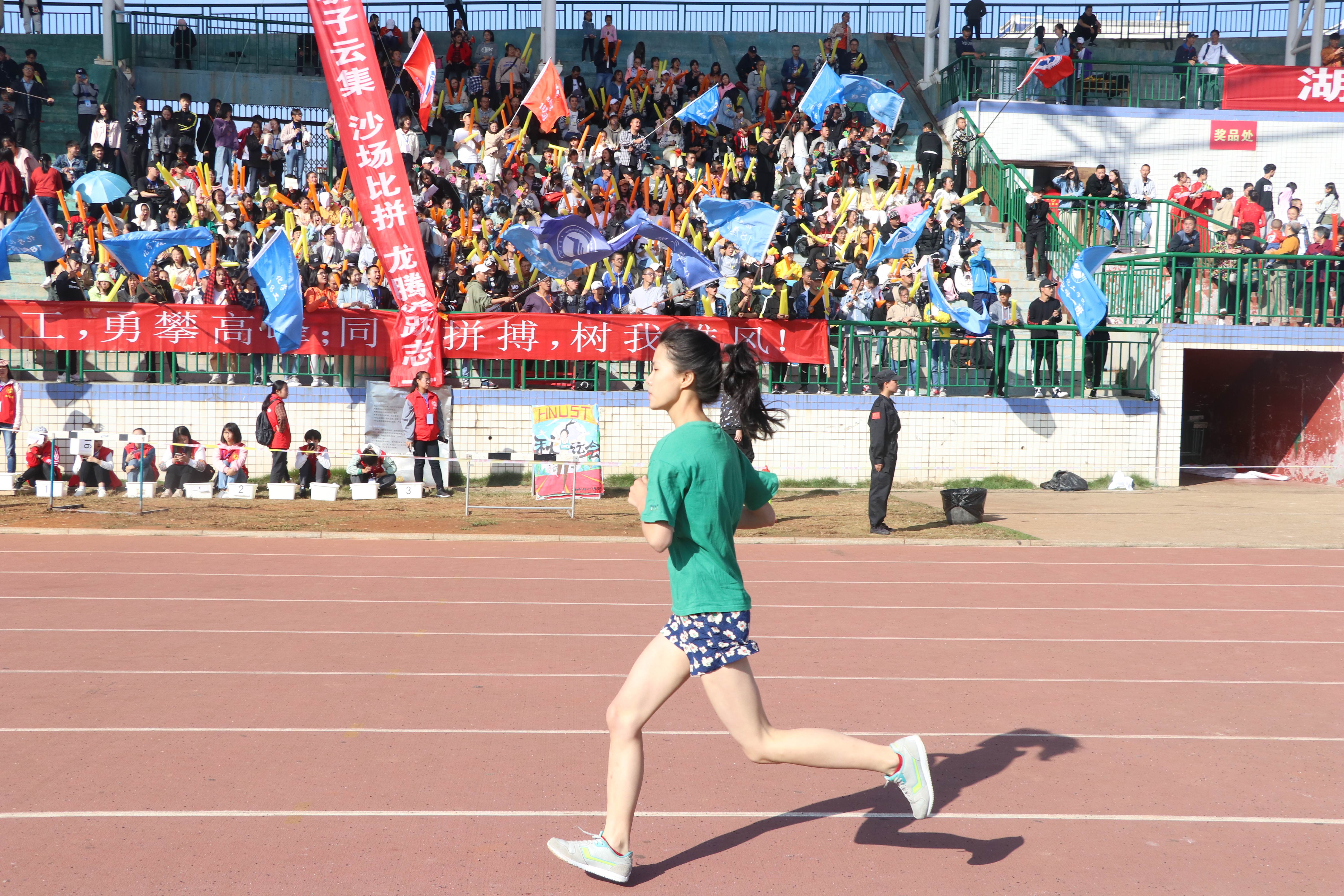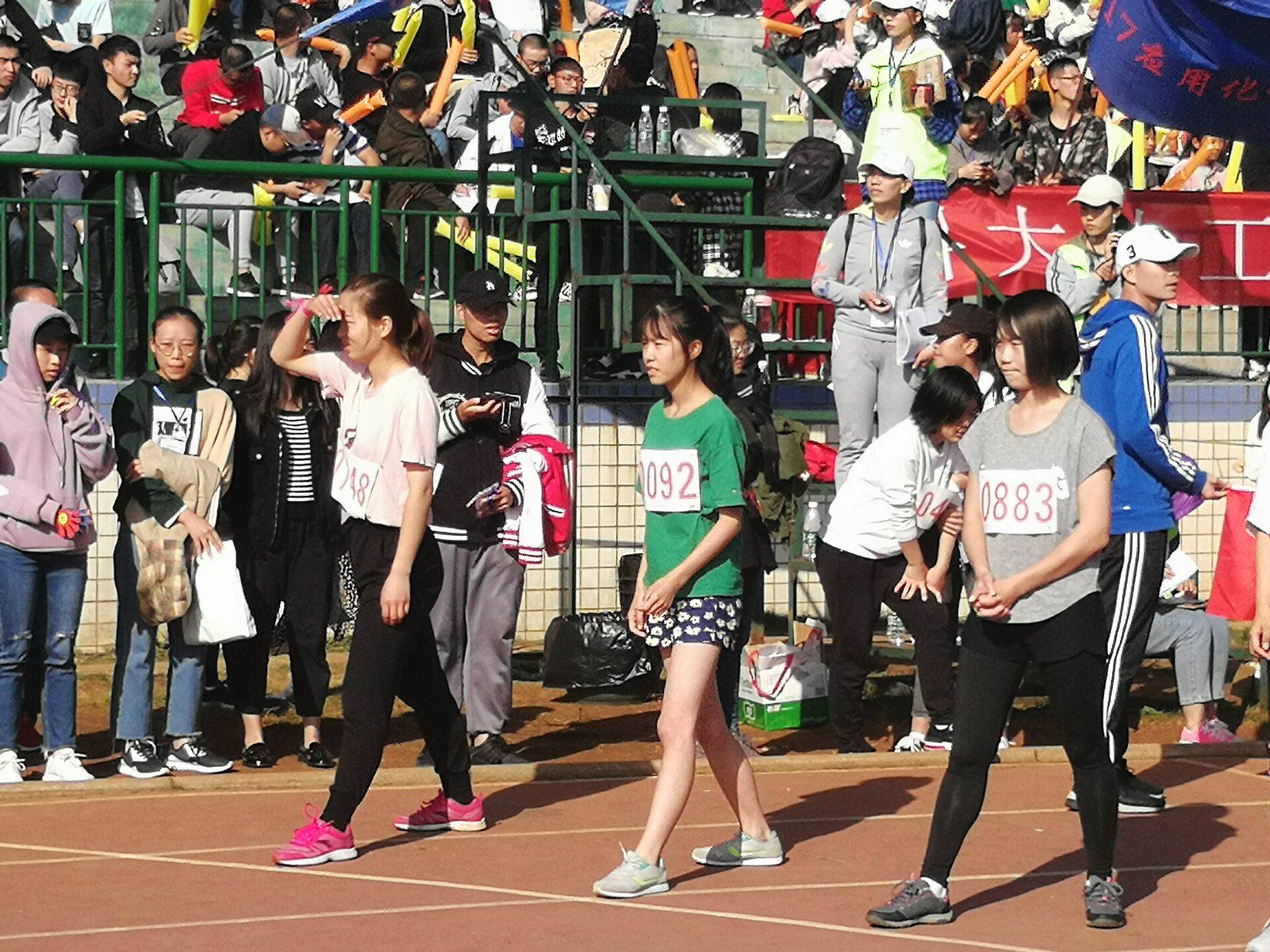 比赛开始前,选手们都紧张有序地做着准备活动。随着裁判员的一声枪响,大家都不疾不徐迈着稳定的步伐向前。每当运动健儿们经过观众席时,所有人都摇动起手中的彩旗和加油棒,为运动员们加油助威。选手们听到如雷的掌声和呐喊,都更加奋力地向前冲去。到了第二圈,选手们不断调整着自己的呼吸和节奏,为最后的冲刺做准备。快到终点时,选手们都已精疲力竭,汗流浃背,但仍拼尽全力冲向终点。快了,快到了!在一声高过一声的加油呐喊中,所有选手依次冲过终点。不断地超越自我,征服自我才是真正体现自我。正如李瑶同学在采访中表示的那样,无论结果如何,都会挑战自我,在运动会上再展英姿。