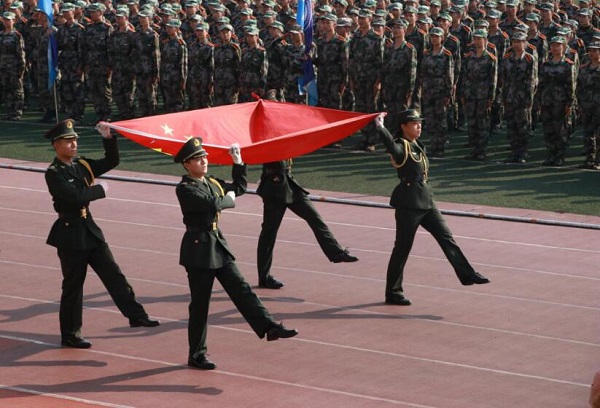 当雄壮的《义勇军进行曲》奏响,国旗仪仗队手捧国旗,迈着整齐的步伐向升旗台前进,此时此刻全体起立,所有人的眼光追逐着五星红旗。伴随着五星红旗徐徐上升,此次军训汇演大会就此拉开帷幕。雄赳赳,气昂昂,迈着矫健的步伐,喊着整齐响亮的口号,LETOU官网方阵队将最优秀的一面尽数展现出来。十四天的刻苦训练,十四天的风吹雨淋,此刻都化为骄傲。