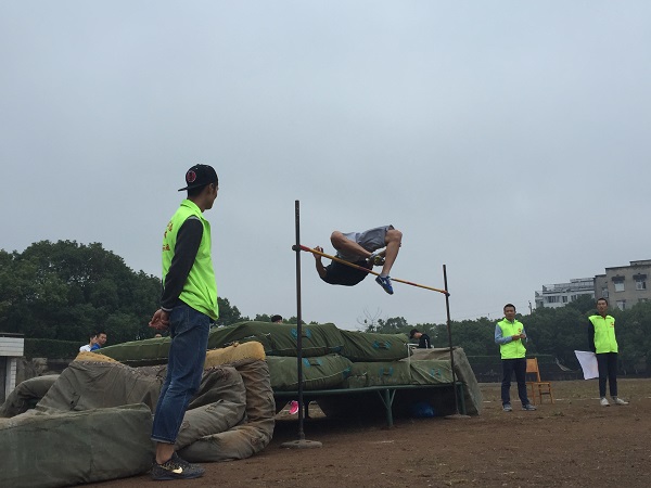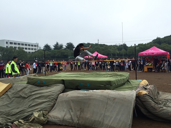 10月20日上午九点四十,校运会男子跳高比赛在旧田径场准时开始。尽管天色阴沉,但这仍然消磨不了运动员的激情,比赛正在紧张而有序地进行着。