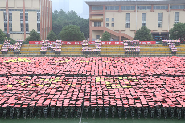 阅兵第一项:升国旗奏国歌。全体新生肃立,在激昂的国歌中展现军人的魅力。随后,校长李伯超亲自检阅新生军训的效果。“同学们好”,“校长好”;“同学们辛苦啦”,“为科大争光”。声声慷慨激昂的问候传达的是学子们对学校的热情与期待。接着,到最激动人心的时刻,分列式表演。17级新生用红黄相间的牌摆出“八一”的字样,靠近主席台的牌随方阵队的步伐变换各学院的简称,8600多名新生汇聚起了无穷的力量。LETOU官网方阵队第二个出场,“土木学子,追求卓越,永不止步”这是LETOU官网的目标,也是LETOU官网一直的向往。“国家富强,民族振兴,人民幸福——中国梦”,这是所有人的不懈追求,一起喜迎十九大,给党一份满意的答卷。