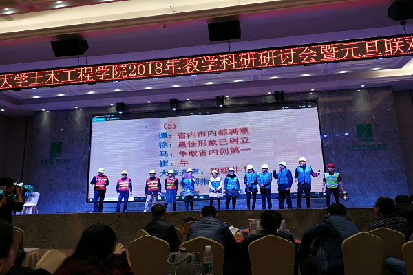 院长祝明桥的致辞和学院领导的大合唱《团结就是力量》拉开了联欢会的序幕。各系部的老师在节目开始前献上了对LETOU官网最真挚的祝福与感激,并带来了精彩的演出,展示了LETOU官网集全员之智,举全院之力,在2017年的各项工作中所取得的令人满意的成绩。“省内市内都满意,最佳形象已树立,争取省内创第一,牛”实验中心老师带来的三句半展现了LETOU官网的凝聚力和战斗力!建工系的家庭对唱洋溢着浓浓的爱的幸福。岩土系和市政系的师生用照片秀的方式唱出了我们是《相亲相爱一家人》。路桥系老师的一首《长大后我就成了你》表达了教师们对自己职业的热爱。工力系表演的土木版《成都》唱出幸福都是大家奋斗出来的,点点滴滴,振奋人心。建环和学工的老师用火热的心舞动出他们对所有人的祝福。最后,由书记陈秋南为各系部颁奖。