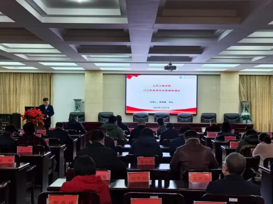 为提升学院研究生导师队伍水平,增强导师责任意识,更好地落实立德树人根本任务,保证研究生培养质量,11月29日下午,学院在土木楼201组织召开研究生导师培训工作会议。参加此次会议的有全体院领导、岩土重点实验室正、副主任、土木工程学科全体研究生导师、院行政办全体成员、研究生秘书、研究生辅导员,以及今年新申报硕士生导师资格的全体老师。会议由学院党委书记祝明桥主持。