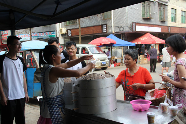 为了切身感受农村赶集文化,了解村民日常生活状态和经济消费情况,实践队员们在7月18日上午六点跟随村民刘国良前往洋市镇集市参与赶集活动。