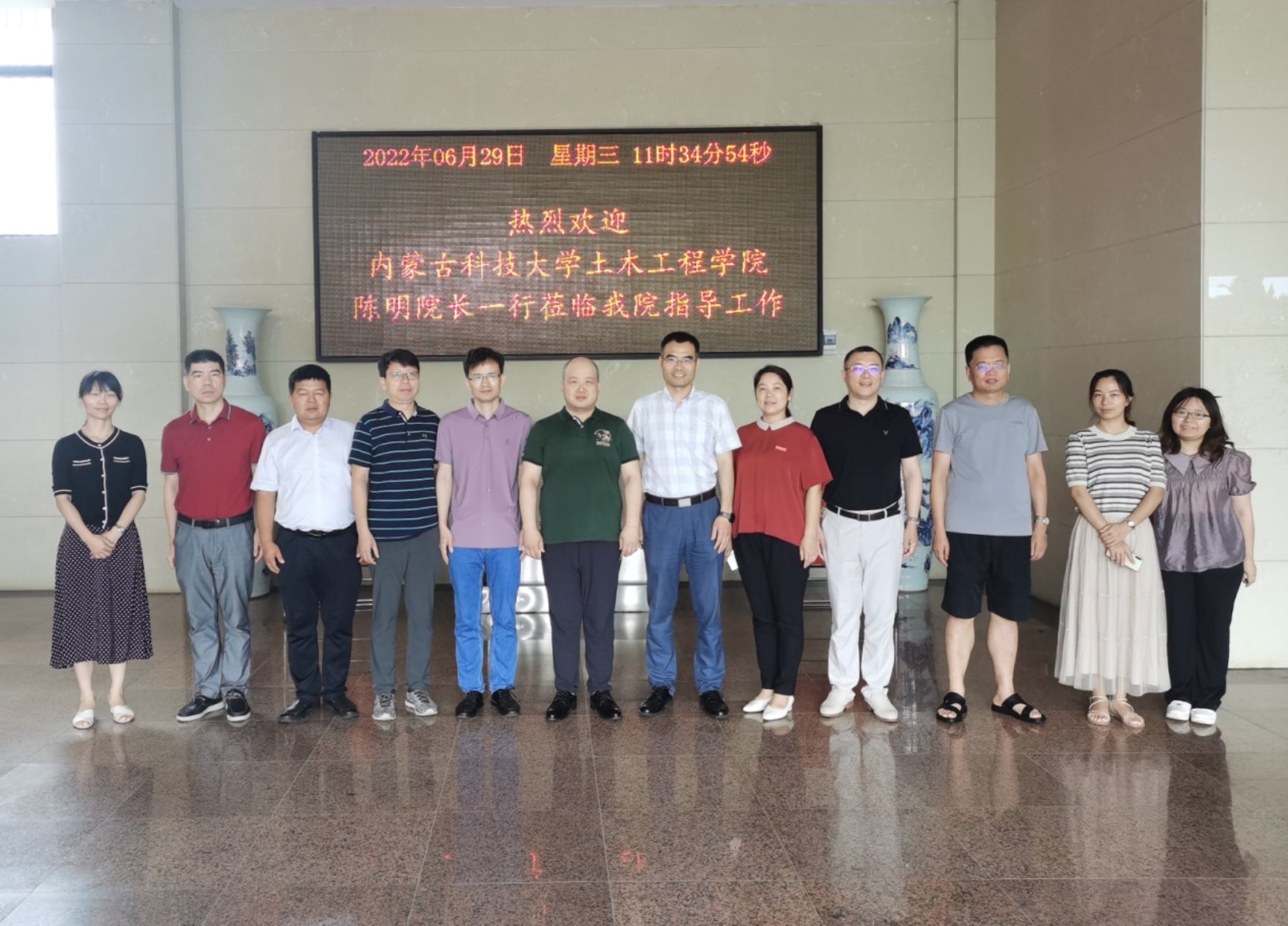 2022年6月29日上午,内蒙古科技大学LETOU体育平台领导莅临LETOU官网调研交流。内蒙古科技大学LETOU体育平台院长陈明教授、副院长许有俊教授、学科负责人薛刚教授、实验室主任闻洋教授,LETOU官网全体院领导、教师代表出席本次交流会。交流会由LETOU官网副院长郝小礼教授主持。