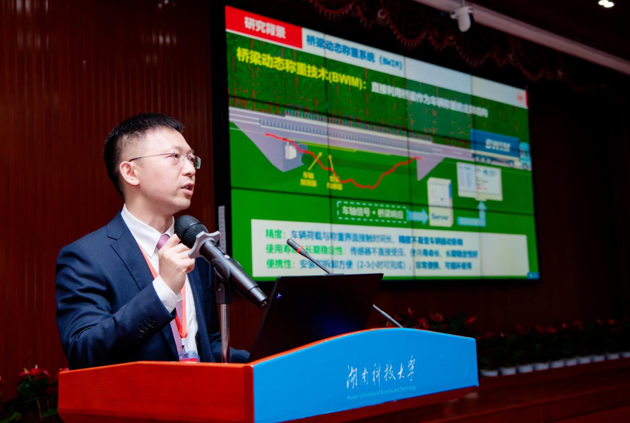 最后一个报告由湖南大学邓露教授带来,题目是“公路桥梁动态称重(BWIM)研究新进展”。他指出,我国超限超载运输情况普遍,严重危害国家基础设施和人民生命财产安全,而交通荷载检测技术是有效防范和治理车辆超载的重要手段。以此为背景,他介绍了团队在桥梁动态称重技术(BWIM)方面的最新研究成果,该技术直接利用桥梁作为车辆称重的主体结构,在精度、长期稳定性以及便携性方面有显著优势。