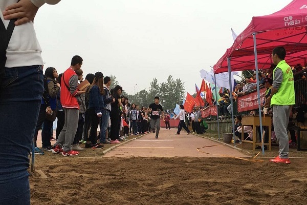 10月21日上午八点四十,女子三级跳远比赛在北校田径场内正式地拉开了帷幕,代表土木学院参赛的选手是卢莉妮。观众的热情丝毫没有被阴凉的天气影响。