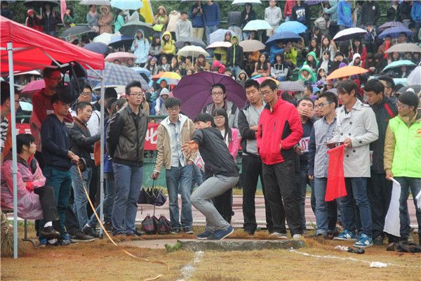 在激烈的比赛进行时,土木学院党委副书记易贵元和各个年级的辅导员、班主任亲自来到赛场边,为土木健儿加油鼓劲。同学们见到有老师来为自己加油,变得更加自信了,在比赛中发挥出了最高水平。