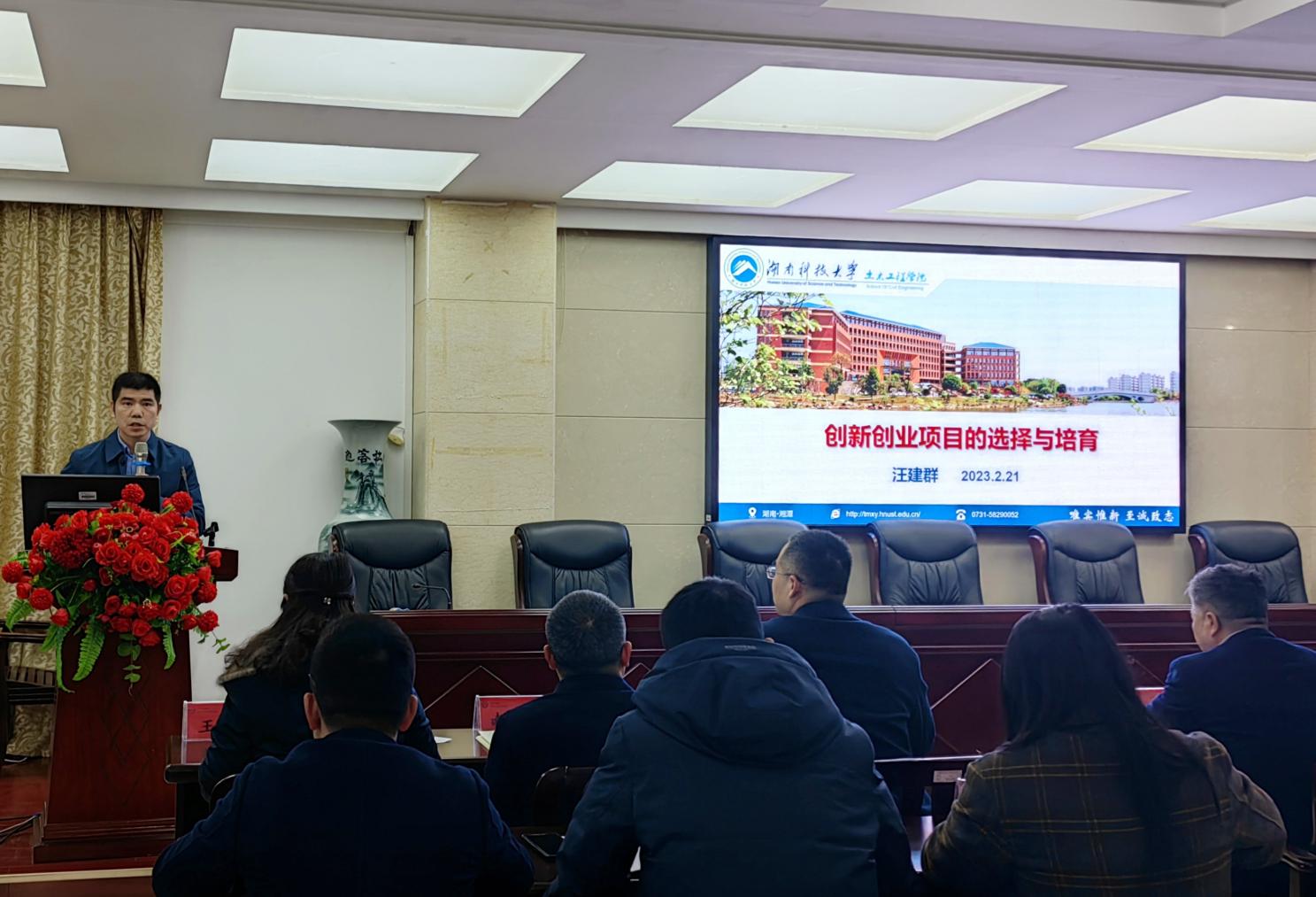 汪建群结合自身经历,分享了大学生创新创业项目的选择与培育的经验与方法。他讲述了“注重谋划,寻找学生科研课题”“组建队伍,寻找志同道合的人”“积极比赛,不到最后一刻绝不放弃”等多个生动鲜活的创新创业教育案例,并希望激发教师开展创新创业教育热情,进一步深化创新创业教育改革。